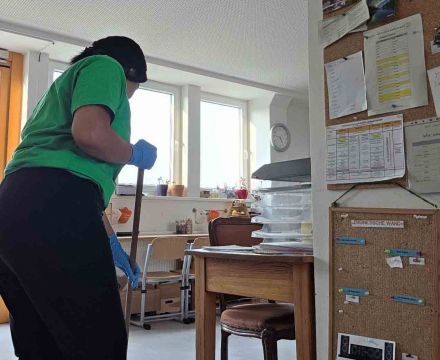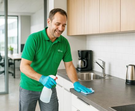 Wir schaffen ein sauberes und hygienisch einladendes Ambiente. Unsere Leistungen umfassen unter anderem die gründliche Reinigung von Böden, Arbeitsflächen, Teeküchen oder Verkaufsräumen. Sanitäre Anlagen reinigen wir gründlich und desinfizierend. Dank unseres 4-Farbsystems stellen wir höchste Hygienestandards sicher.